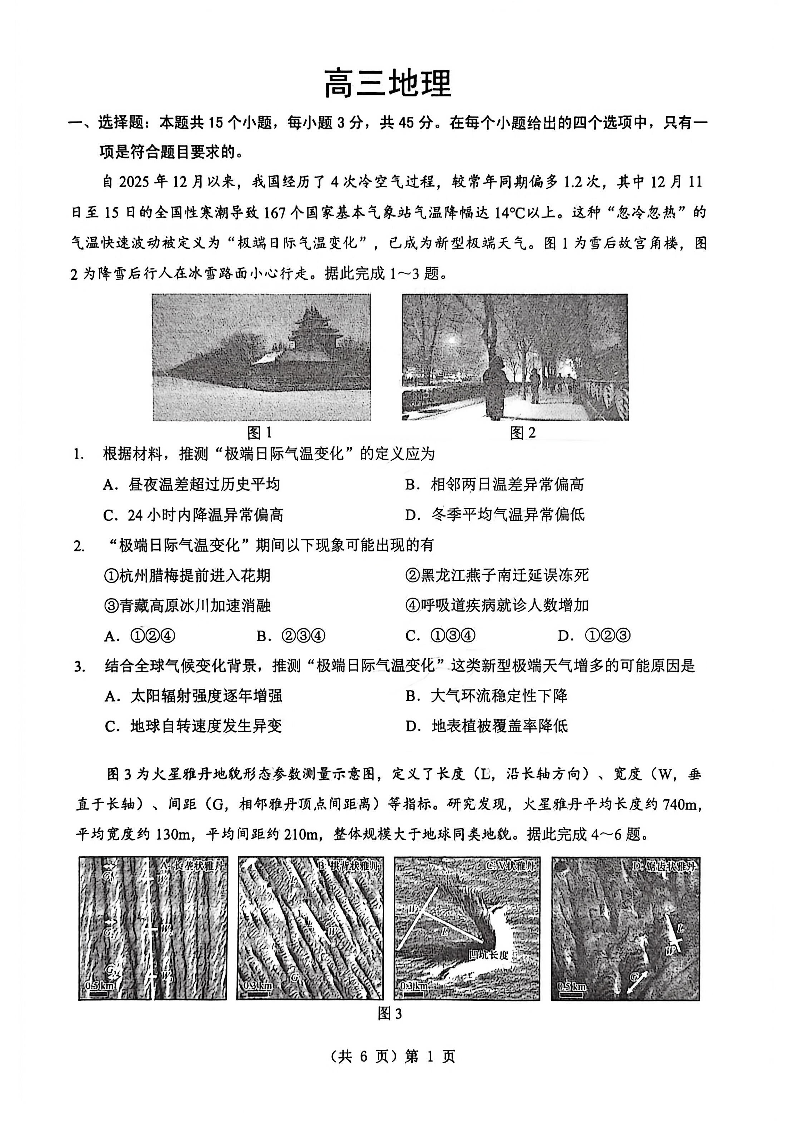 高三地理--湖北省新八校2026届高三下学期2月开学考试