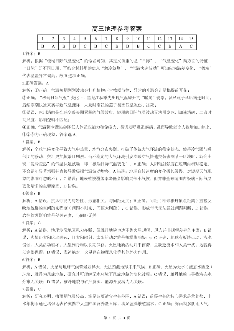高三地理答案--湖北省新八校2026届高三下学期2月开学考试