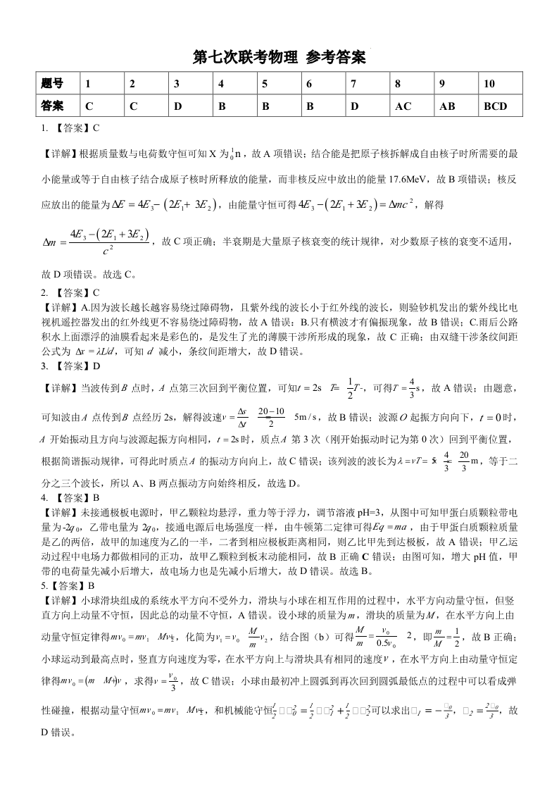 高三物理答案--云南省昆明市第一中学2026届高三2月复习诊断