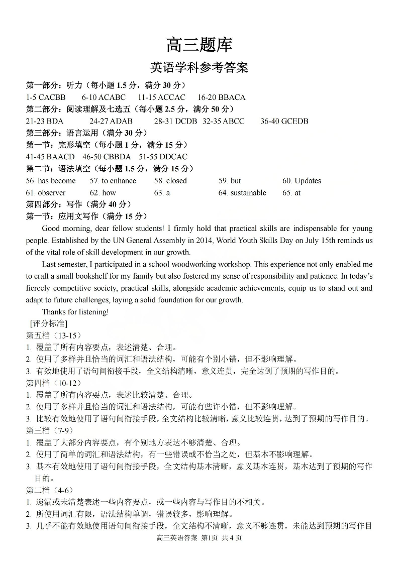 高三英语答案--浙江省2026届高三2月返校考七彩阳光、浙南名校、精诚联盟、金兰教育
