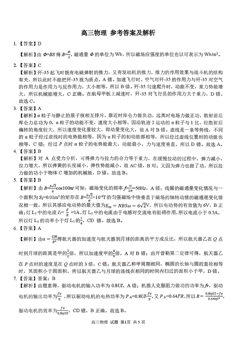 高三物理答案--浙江省2026届高三2月返校考七彩阳光、浙南名校、精诚联盟、金兰教育