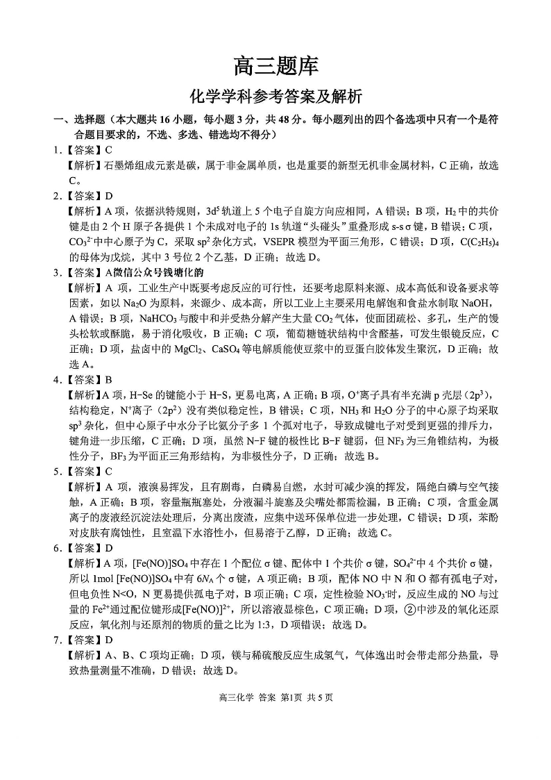 高三化学答案--浙江省2026届高三2月返校考七彩阳光、浙南名校、精诚联盟、金兰教育
