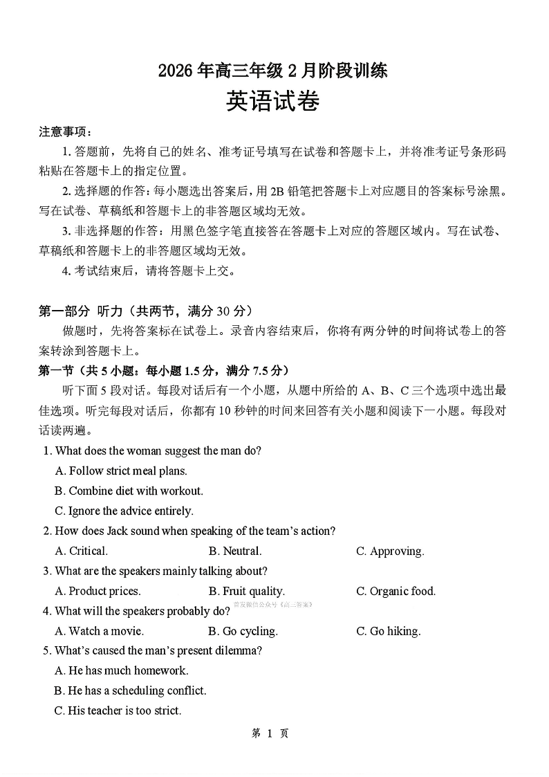 高三英语+答案---云南2026届三校高考备考实用性联考卷(六)