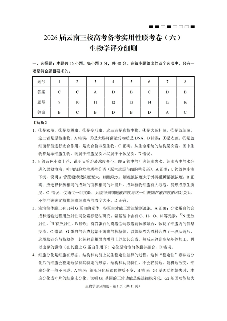 高三生物答案---云南2026届三校高考备考实用性联考卷(六)