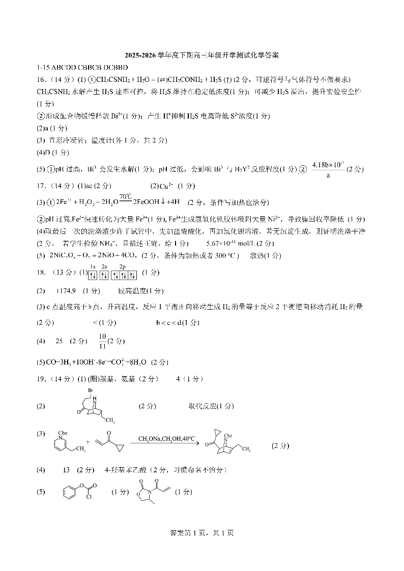 高三化学答案--四川省成都市第七中学2026届高三下期高开学考试