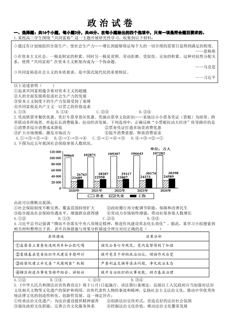 高三政治--四川省成都市第七中学2026届高三下期高开学考试