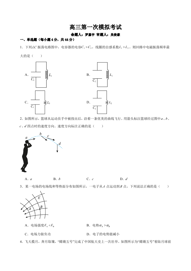 高三物理+答案--江苏南京市六合区名校联盟2026届高三下学期第一次模拟考试