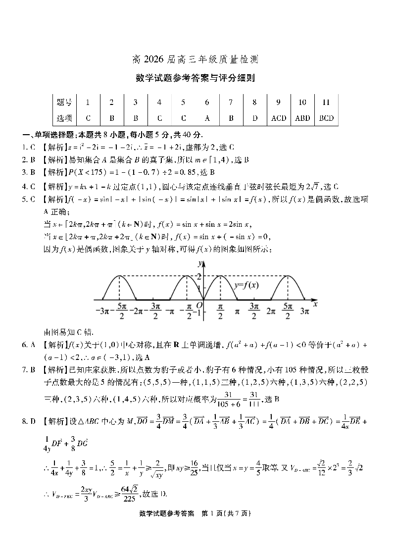 高三数学答案--重庆市南开中学2026届高三第六次质量检测
