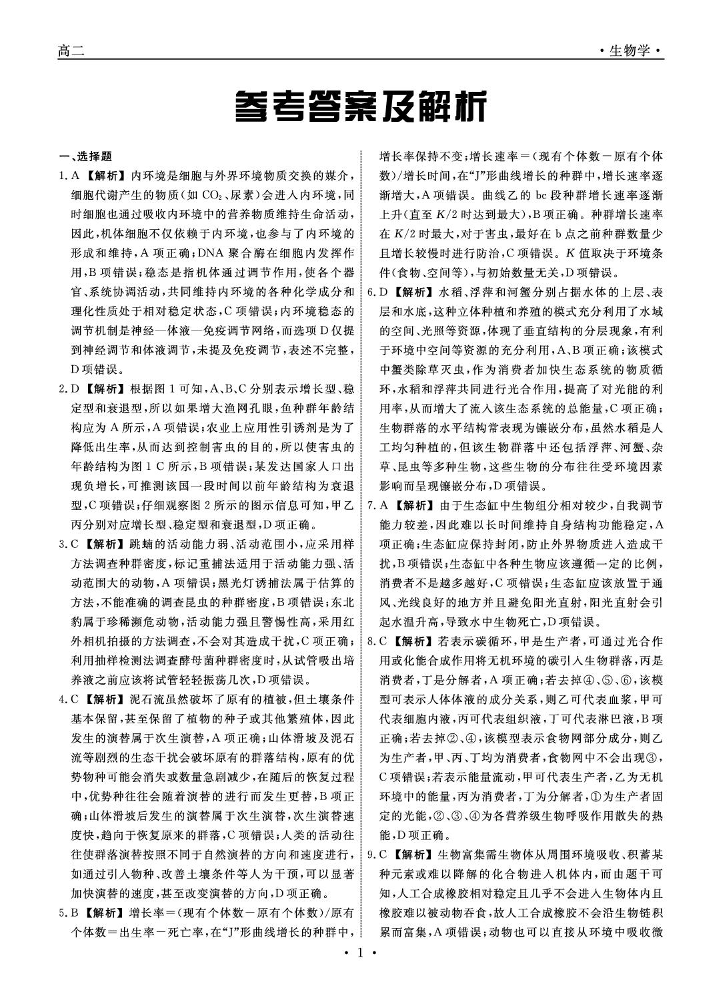 高二生物答案--辽宁省名校联盟2025-2026学年高二下学期开学测试