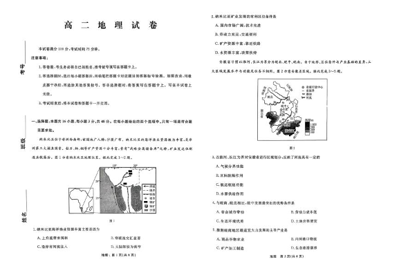 高二地理--辽宁省名校联盟2025-2026学年高二下学期开学测试