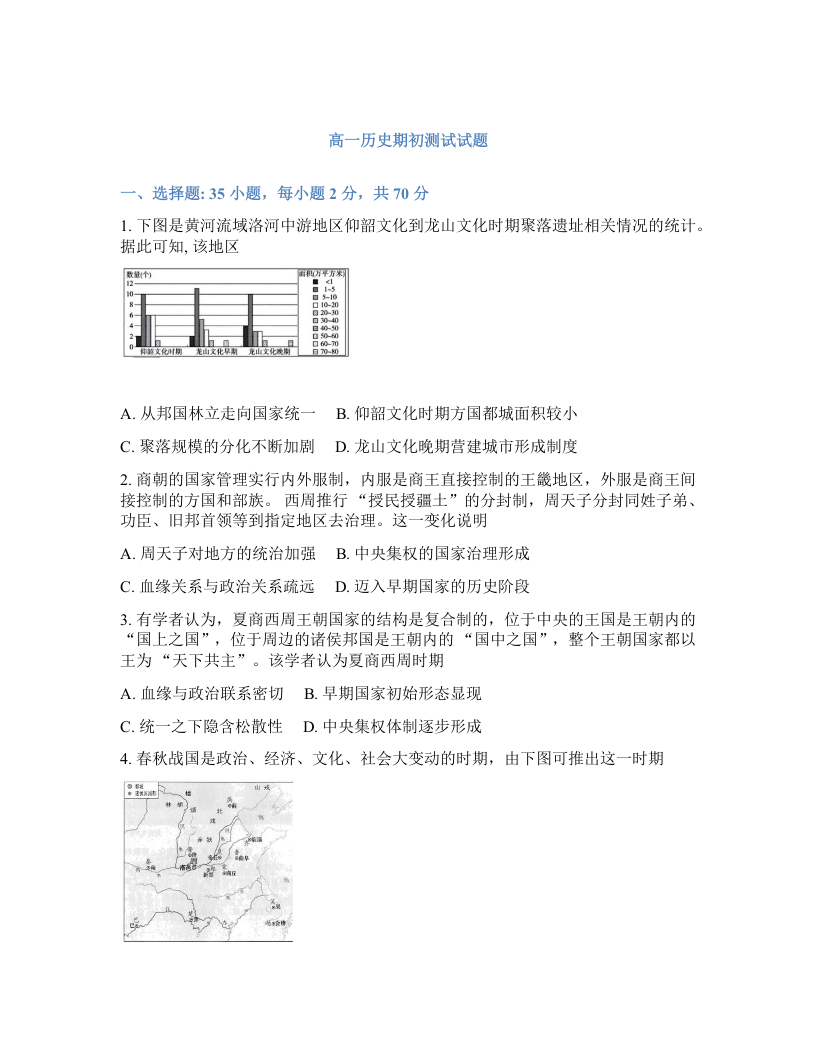 高一历史+答案--辽宁省实验中学2025-2026学年高一下学期2月期初考试