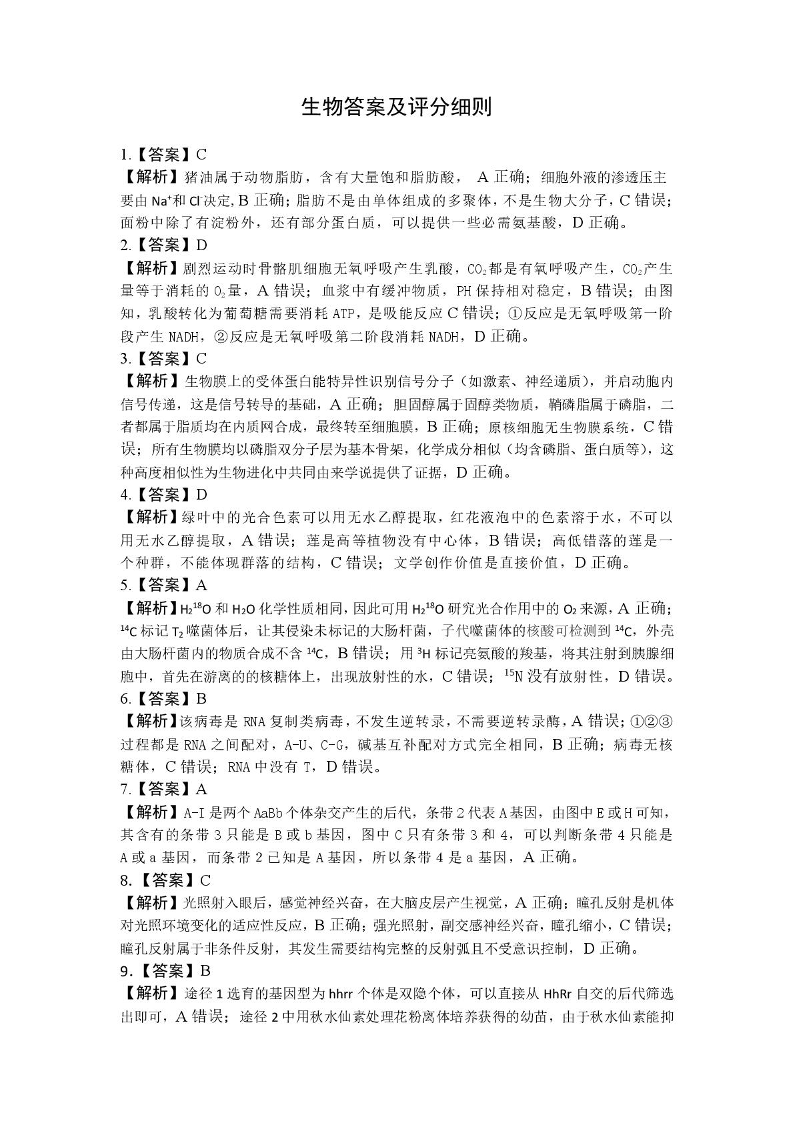 高三生物答案--湖北襄阳市2026届高三3月统一调研测试