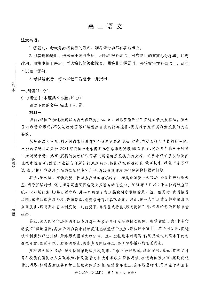 高三语文--湖南省新高考教学教研联盟(长郡二十校联盟)2026届高三下学期3月联考