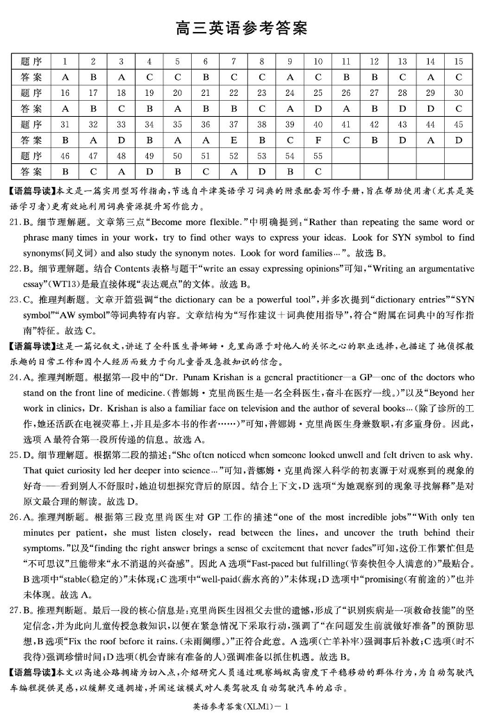 高三英语答案--湖南省新高考教学教研联盟(长郡二十校联盟)2026届高三下学期3月联考