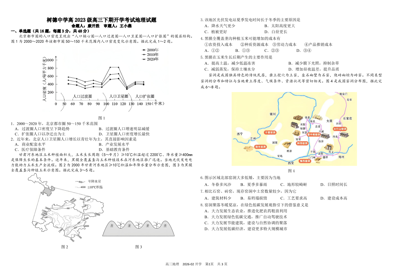高三地理+答案--四川成都市树德中学2026届高三下学期开学考试