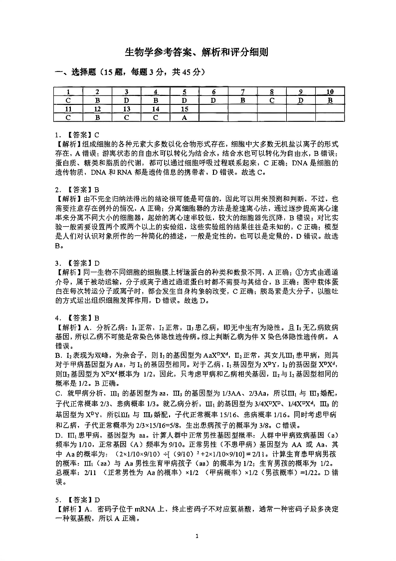 高三生物答案--安徽省江南十校2026届高三下学期3月开学考试