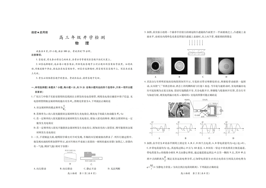 高三物理--广东湛江市2026届高三下学期开学考试