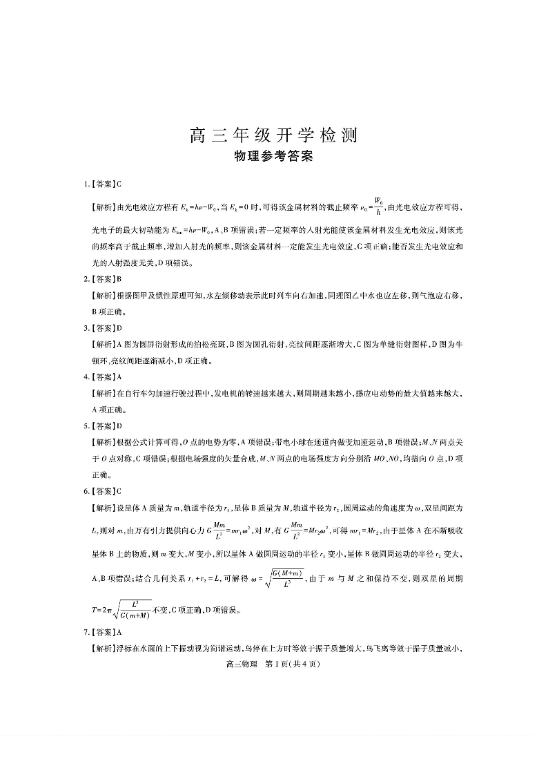 高三物理答案--广东湛江市2026届高三下学期开学考试