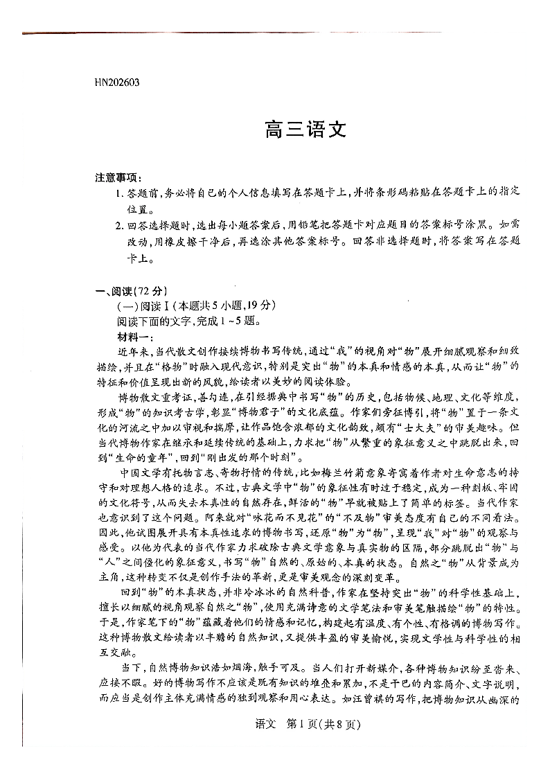 高三语文--河南省部分高中2026届高三下学期3月开学素质评价考试