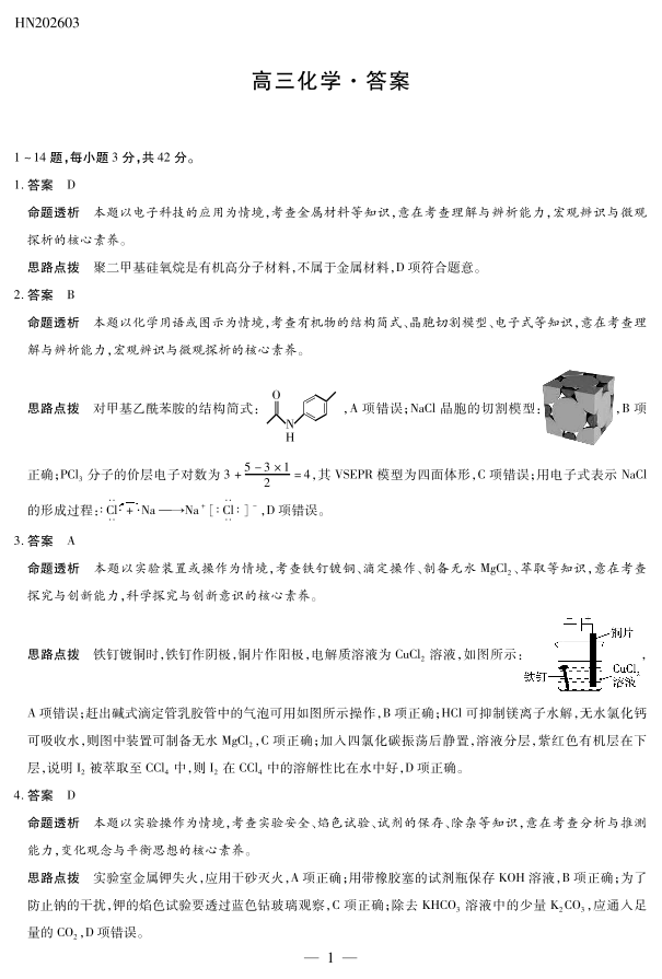 高三化学答案--河南省部分高中2026届高三下学期3月开学素质评价考试
