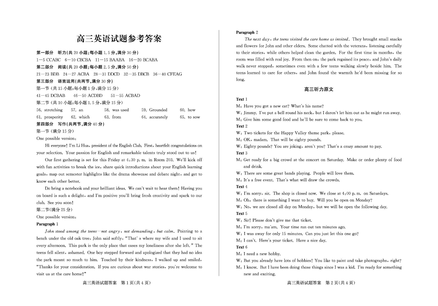 高三英语答案--山东德州市2026届高三下学期3月一模考试(德州一模)