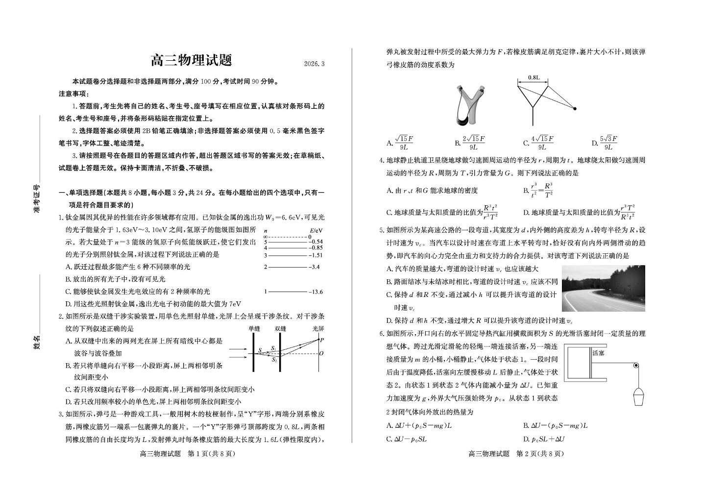 高三物理--山东德州市2026届高三下学期3月一模考试(德州一模)
