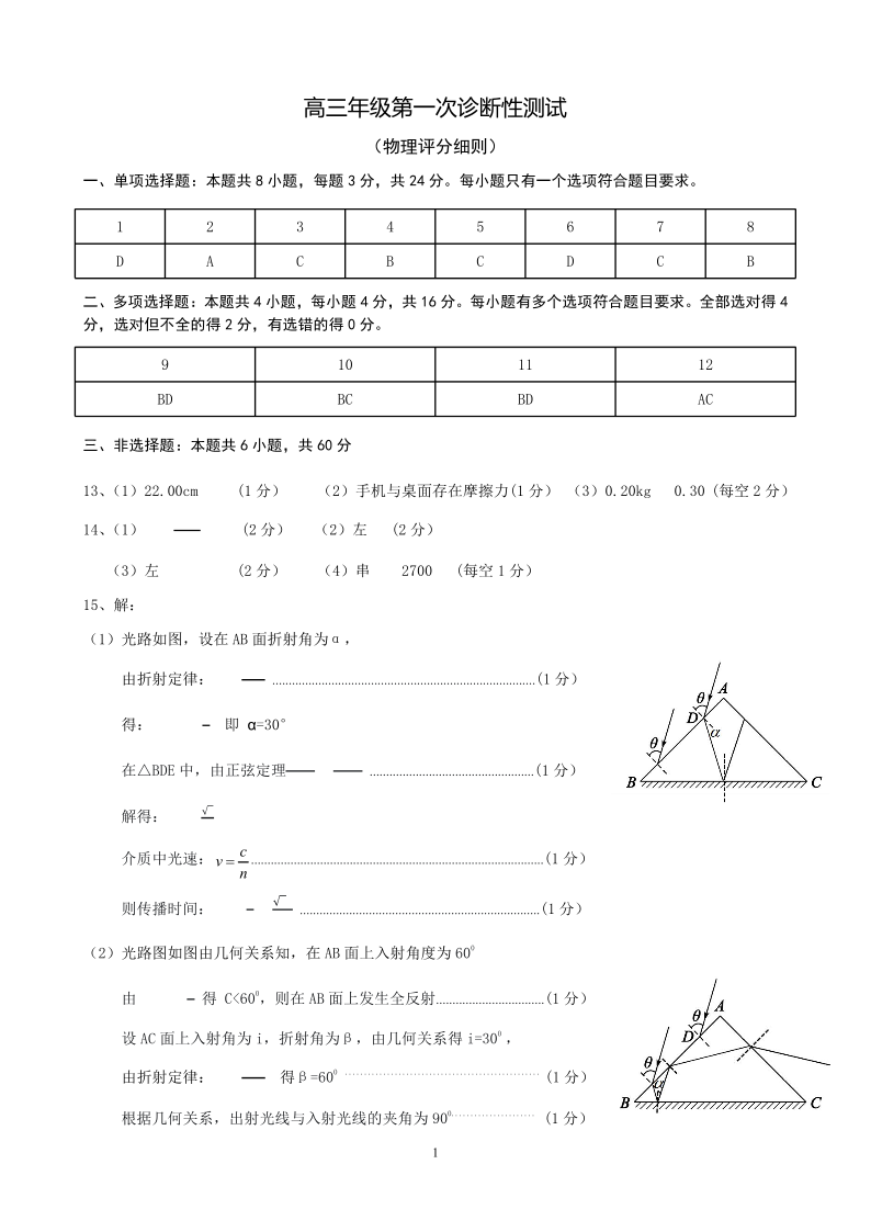 高三物理答案--山东东营市2026届高三下学期第一次诊断性考试(东营一模)