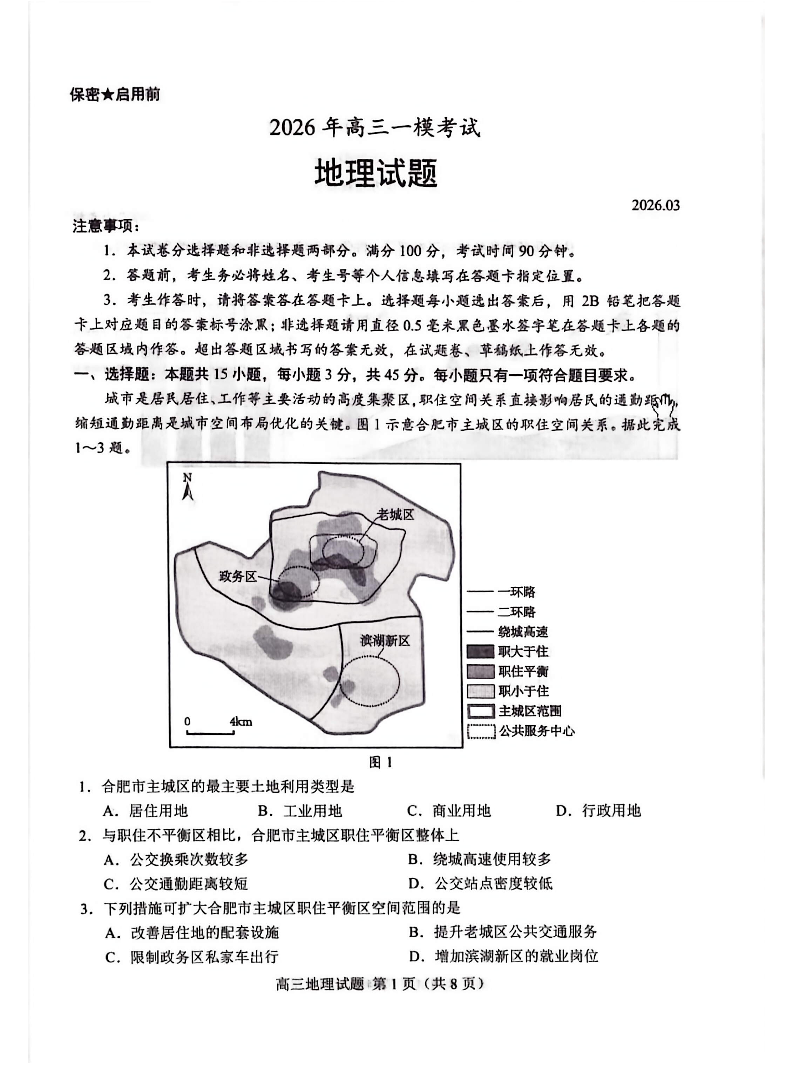 高三地理--山东菏泽市2026届高三下学期3月一模考试