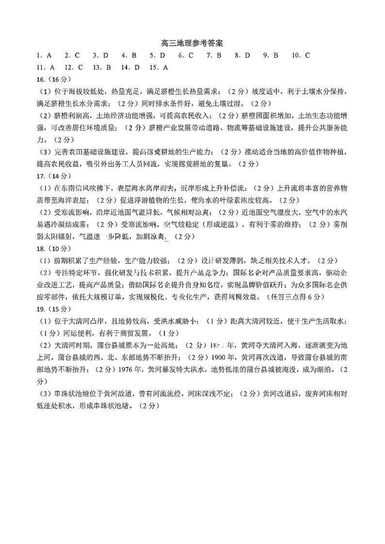 高三地理答案--山东菏泽市2026届高三下学期3月一模考试