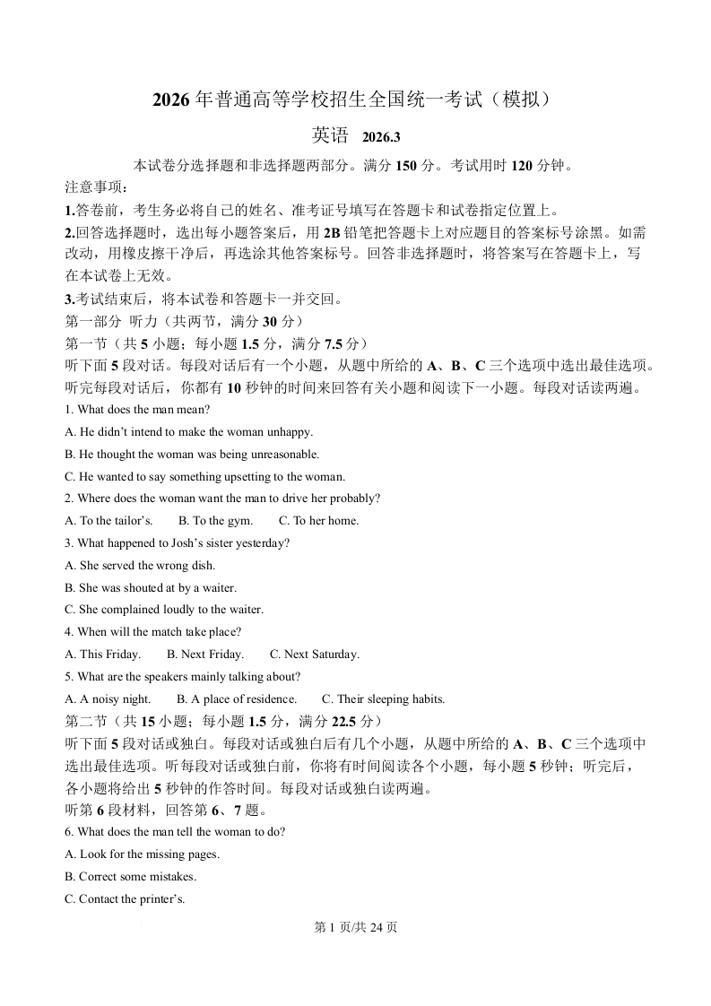 高三英语(解析版)--山东临沂市2026届高三下学期3月一模考试