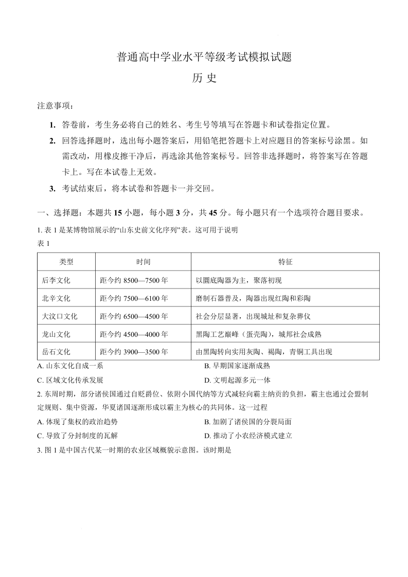 高三历史+答案--山东临沂市2026届高三下学期3月一模考试