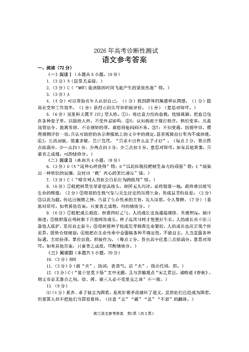 高三语文答案--山东烟台市2026届高三下学期诊断性考试(烟台一模)