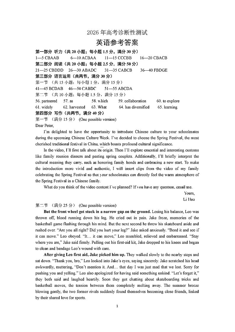 高三英语答案--山东烟台市2026届高三下学期诊断性考试(烟台一模)