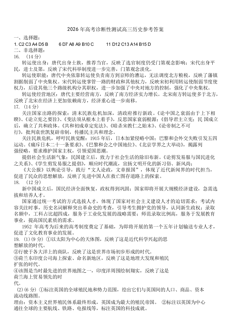 高三历史答案--山东烟台市2026届高三下学期诊断性考试(烟台一模)
