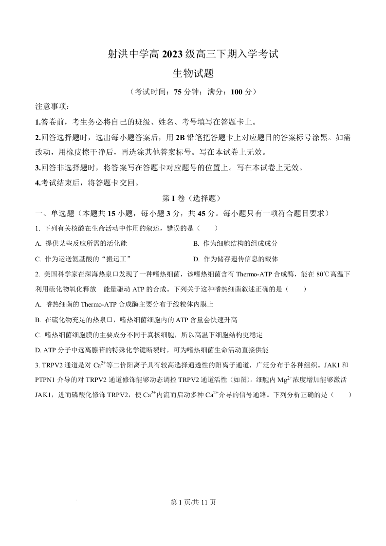 高三生物(原卷版)--四川省射洪中学校2026届高三下学期3月入学考试