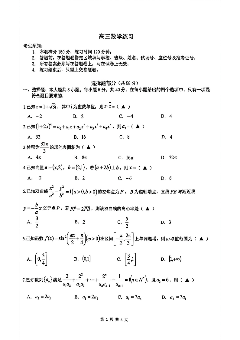 高三数学--浙江省名校协作体G12联盟2026届高三下学期3月二模考试