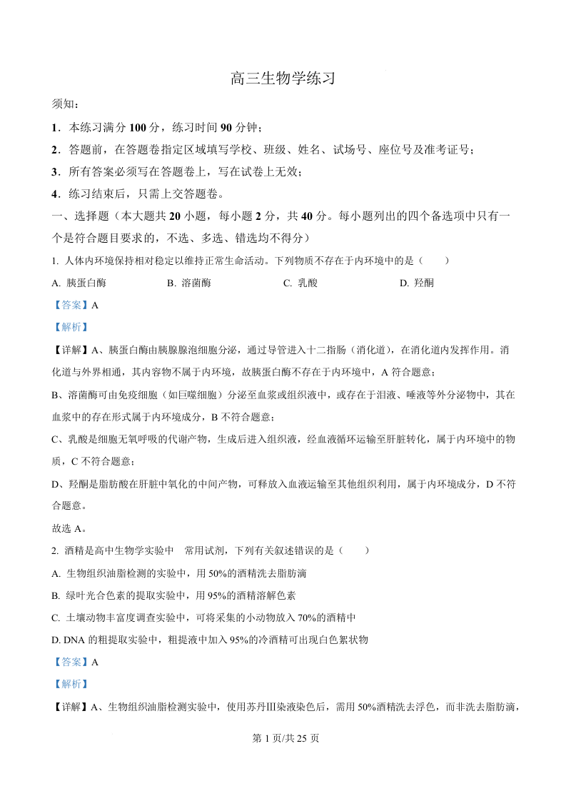 高三生物(解析版)--浙江省名校协作体G12联盟2026届高三下学期3月二模考试
