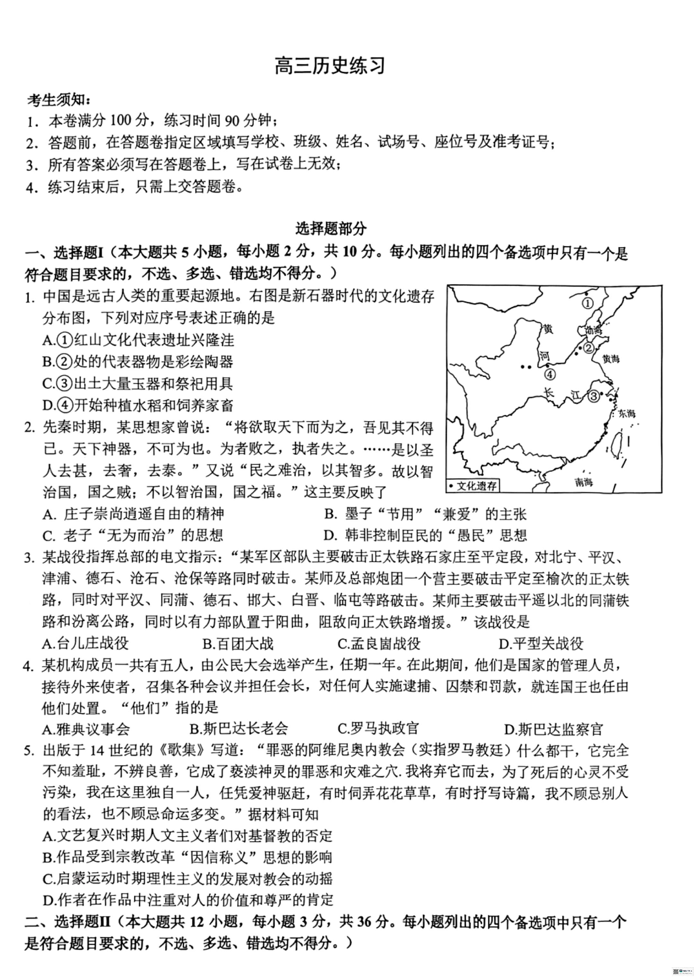 高三历史+答案--浙江省名校协作体G12联盟2026届高三下学期3月二模考试