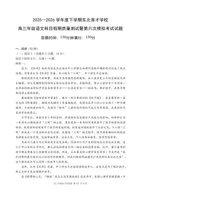 高三语文--辽宁省东北育才学校2026届高三下学期第六次模拟考试