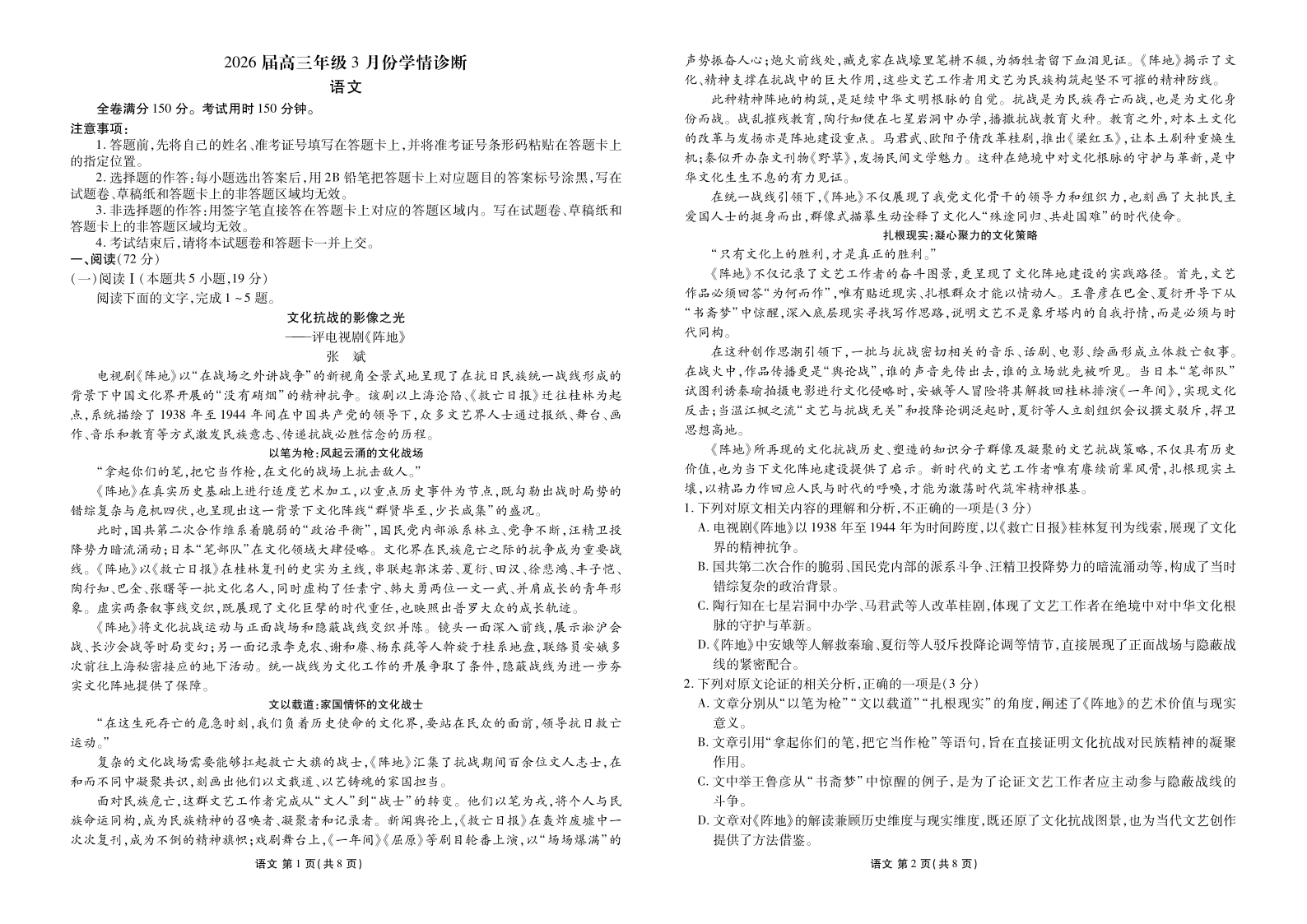 高三语文--衡水金卷2026届高三年级3月份学情诊断