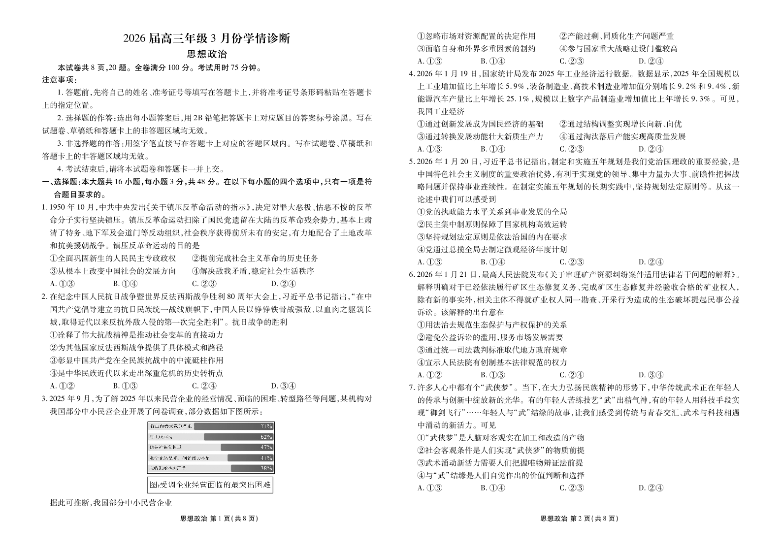 高三政治--衡水金卷2026届高三年级3月份学情诊断