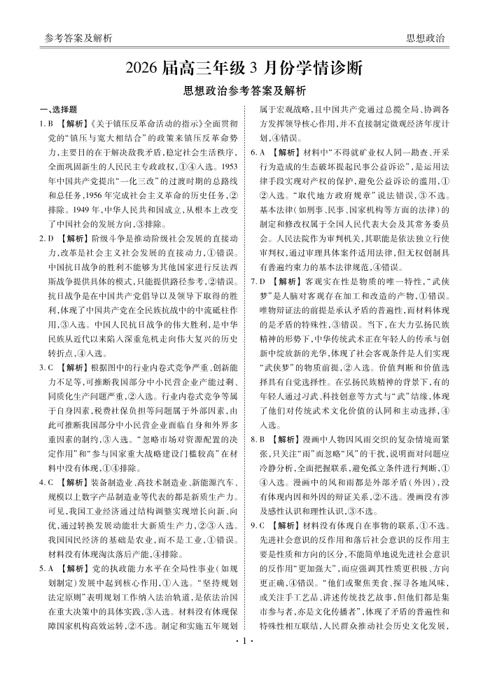 高三政治答案--衡水金卷2026届高三年级3月份学情诊断