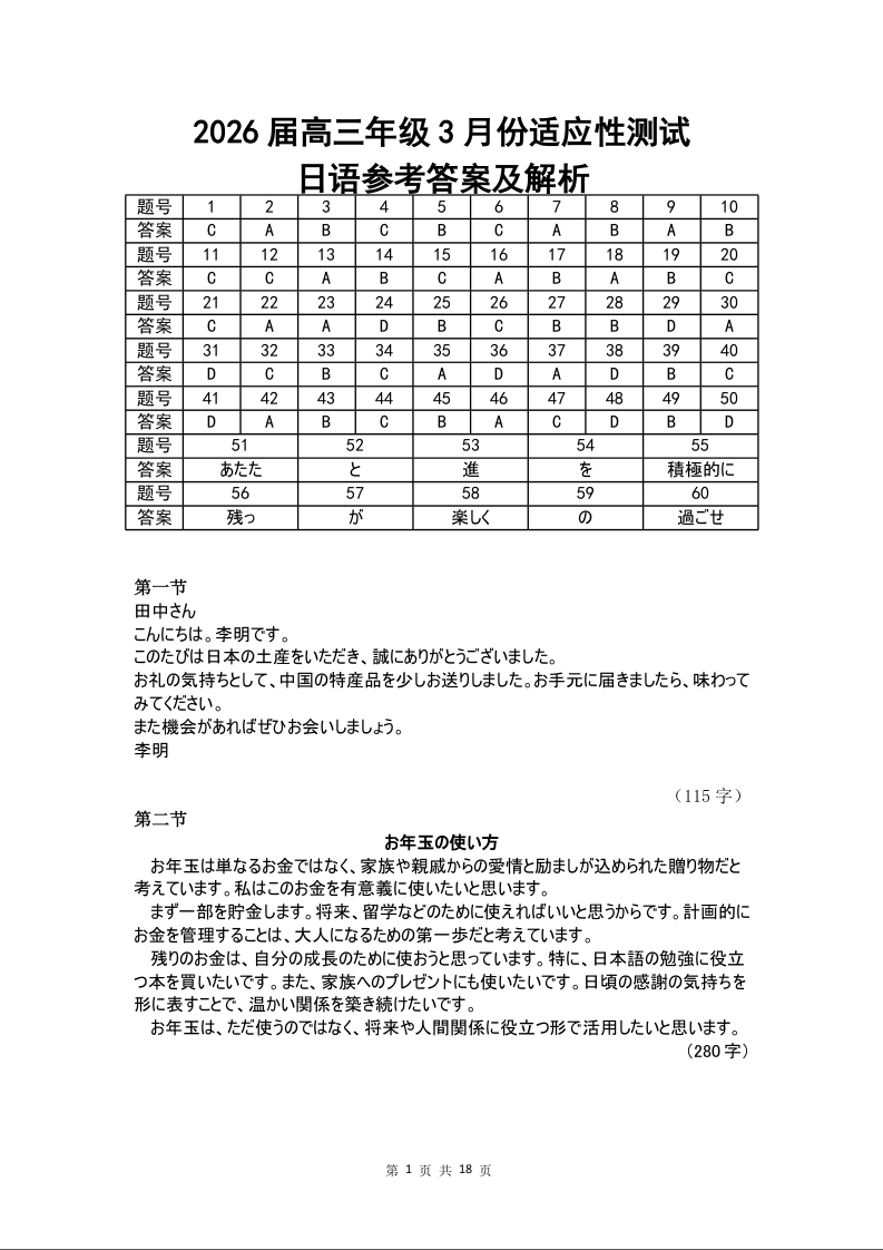 高三日语答案--衡水金卷2026届高三年级3月份学情诊断