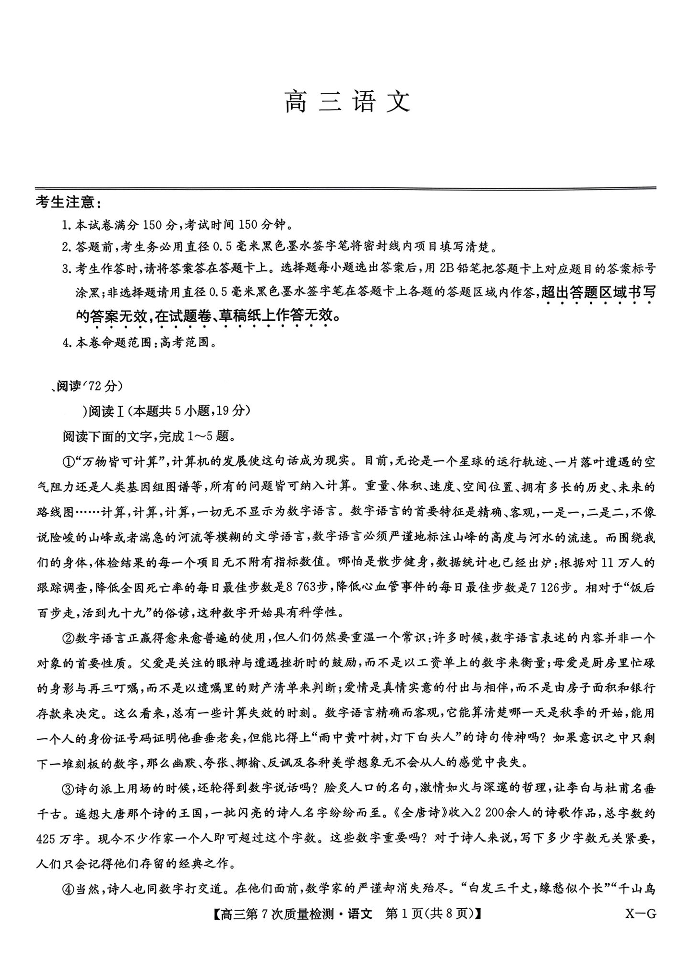 高三语文--九师联盟2026届高三3月第7次教学质量检测巩固卷