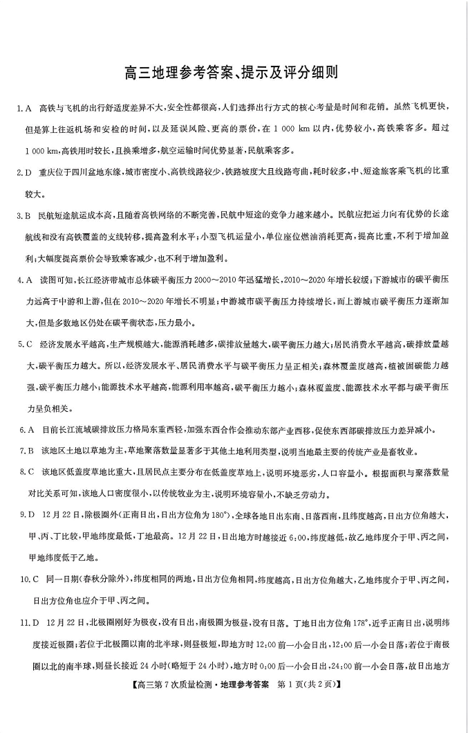 高三地理答案--九师联盟2026届高三3月第7次教学质量检测巩固卷