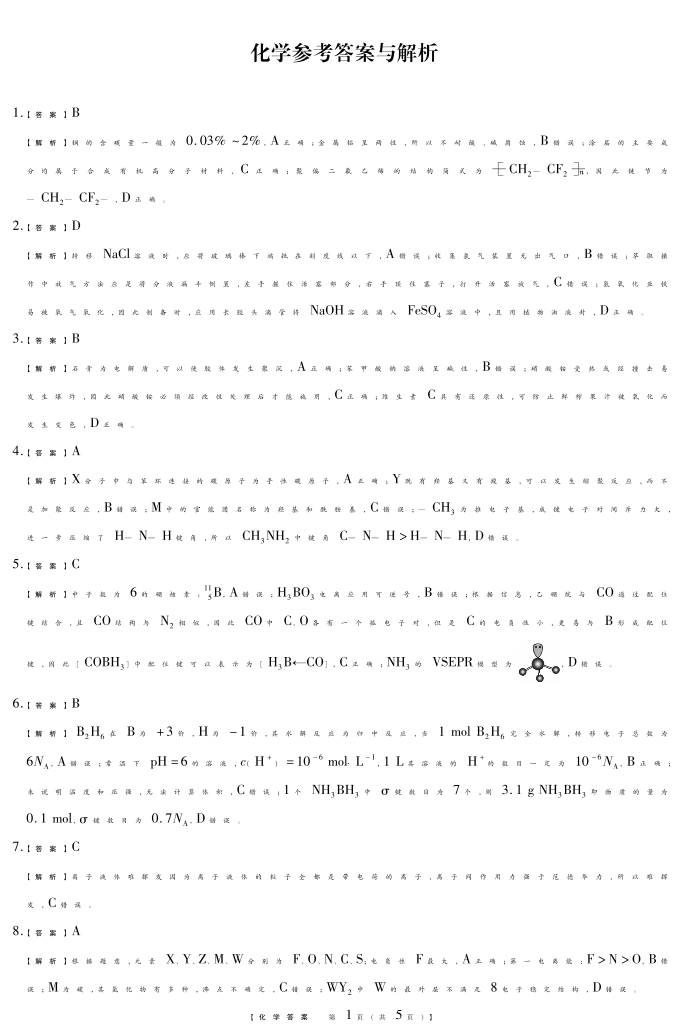 高三化学答案--河南省新未来2026届高三3月联考