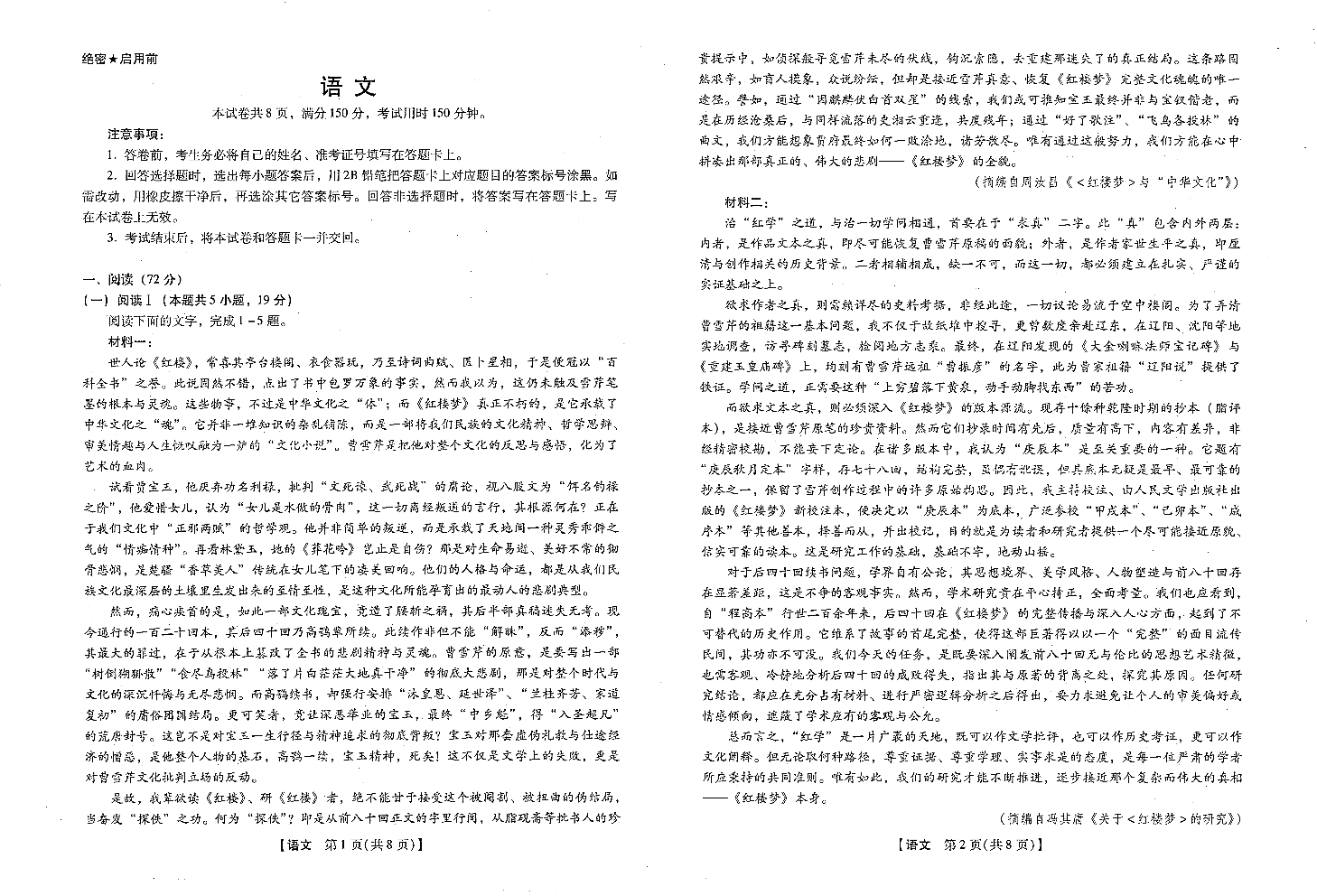 高三语文--河北省琢名小渔名校联考2026届高三3月开学调研检测