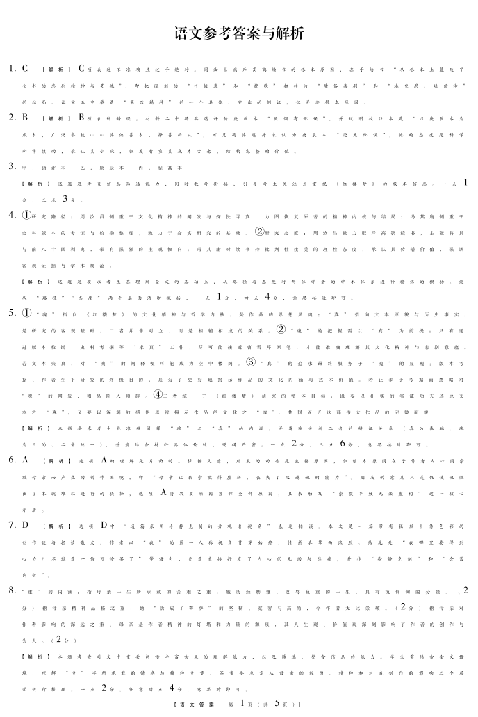 高三语文答案--河北省琢名小渔名校联考2026届高三3月开学调研检测