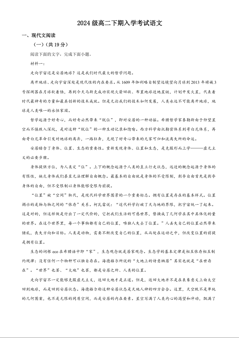 高二语文(解析版)--湖南省邵阳市第二中学2025-2026学年高二下学期入学考试
