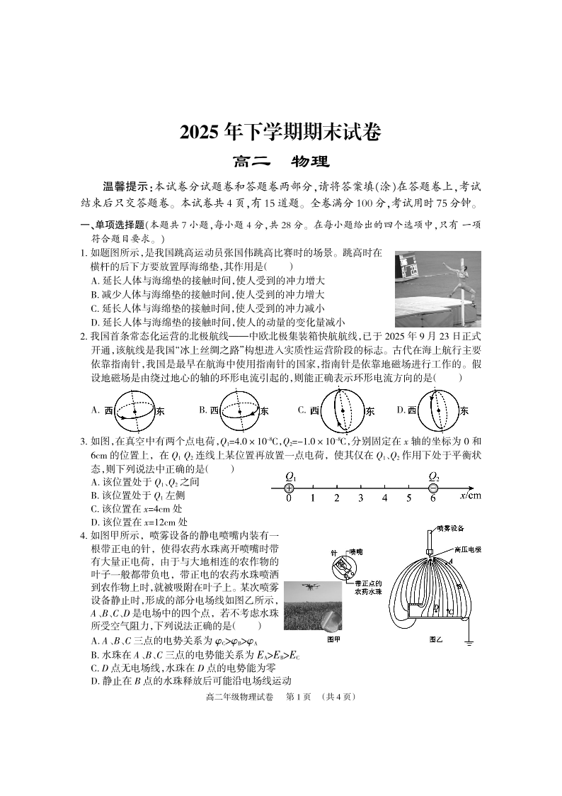 高二物理--湖南岳阳市岳阳楼区2025-2026学年高二上学期期末考试